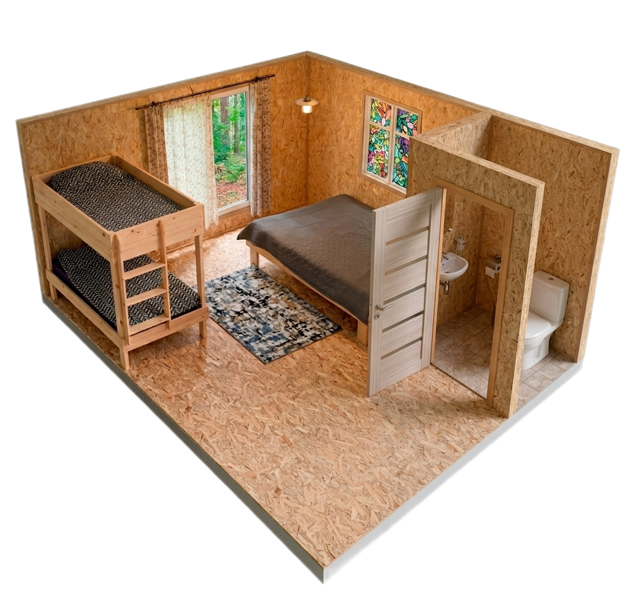 Площадь домика: 15 м² Спальных мест: 2 взрослых / 2 детских